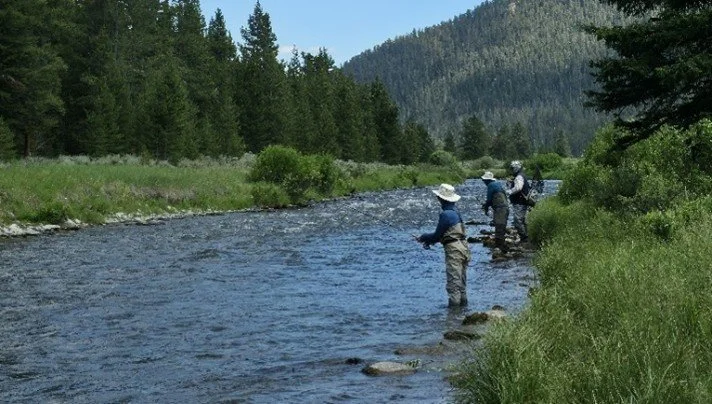 39. Fly fishing in June with Cyndi, Byron, and Angela in the Gallatin River near Big Sky, Montana.